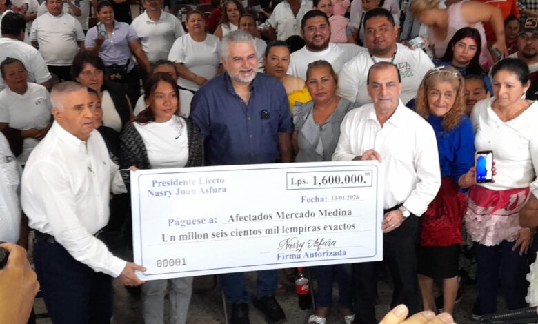 ¡Promesa cumplida! Entregan L 1.6 millones a afectados por incendio en el Mercado Medina en nombre de Nasry Asfura