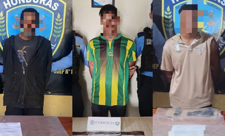 Se trata de tres ciudadanos de 22, 25 y 37 años de edad, originarios del departamento de Olancho. Durante la operación, los agentes lograron decomisar varios envoltorios que presuntamente contienen sustancias ilícitas, así como un arma de fuego que era portada sin la documentación correspondiente.