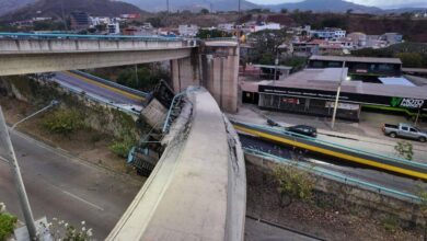 Video muestra impactantes imágenes del momento exacto en que se derrumba parcialmente el puente Juan Manuel Gálvez